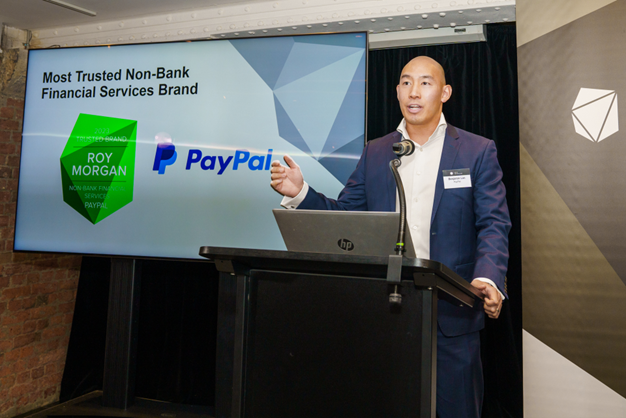 Picture: Enterprise Development Manager of PayPal in Australia, Benjamin Lim, accepts the award as the ‘Most Trusted Brand in Non-Bank Financial Services’.