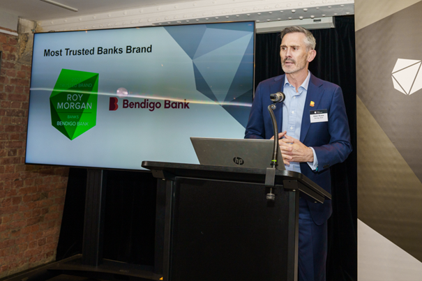Picture: Chief Customer Officer Business & Agribusiness, Adam Rowse, of Bendigo Bank, accepts the award as the ‘Most Trusted Bank Brand’ in Australia.