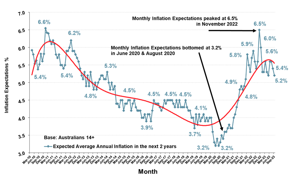 Monthly Roy Morgan Inflation Expectations Index (2010 – 2023) |