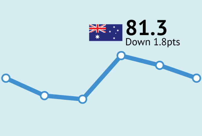 - Fewer than one-in-ten Australians, 8% (down 1ppt) expect ‘good times’ for the Australian economy over the next twelve months compared to over a third, 34% (down 1ppt), that expect ‘bad times’.