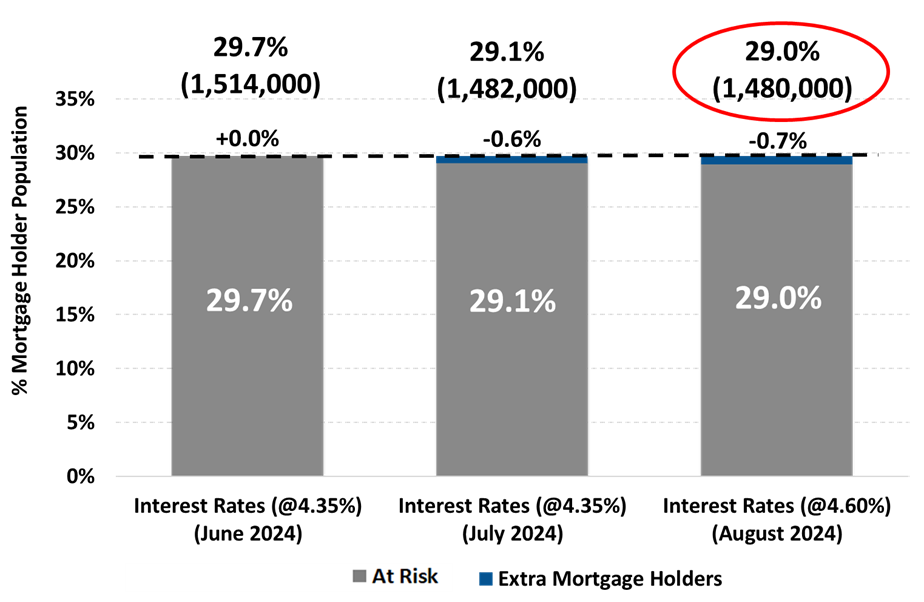 Mortgage Risk projected forward following income tax cuts in July and a forecast interest rate increase of +0.25% to 4.60% in August 2024