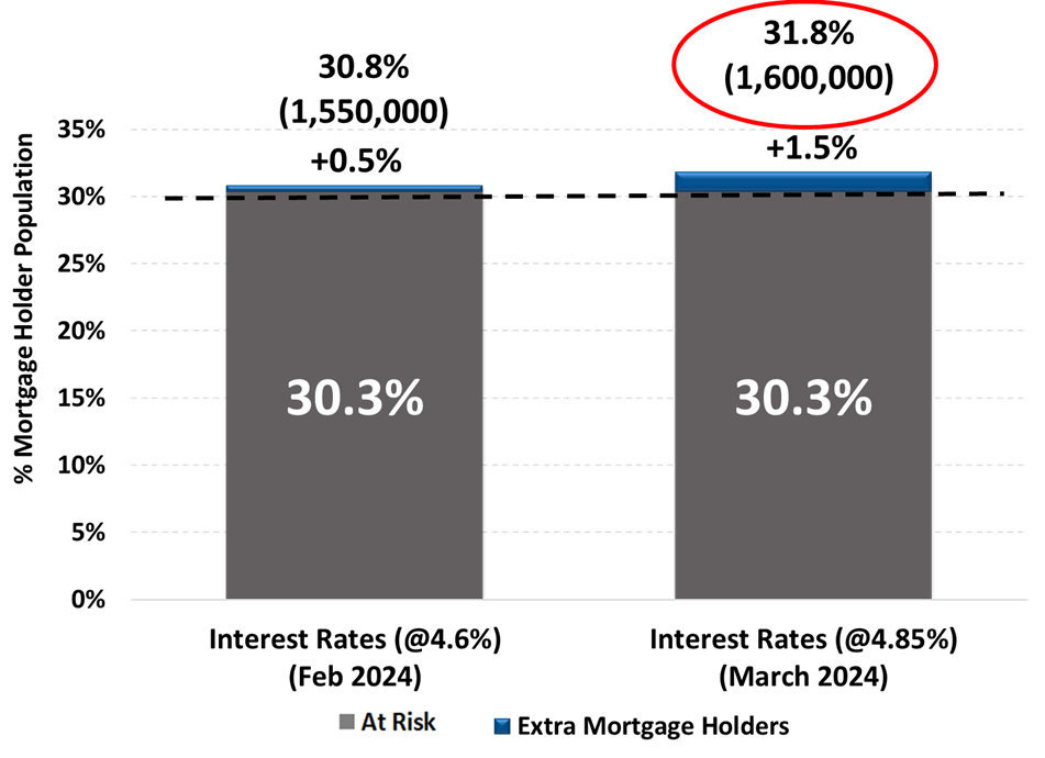 Mortgage Risk projected forward following interest rate increases in February & March 2024