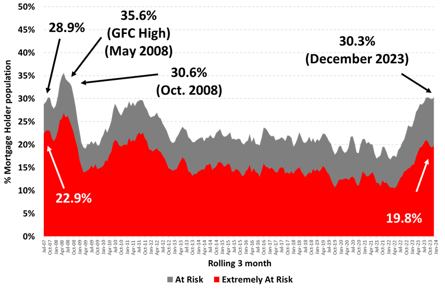 Mortgage holders are considered ‘Extremely at Risk’[2] if even the ‘interest only’ is over a certain proportion of household income.