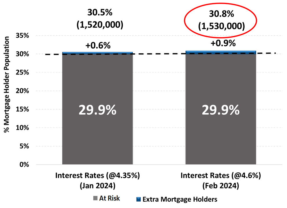 Mortgage Risk projected forward following an interest rate increase of +0.25% in February 2024