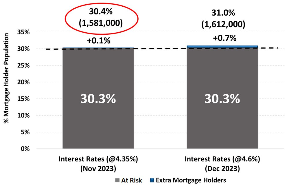 Mortgage Risk at different level of interest rate increases in November & December 2023