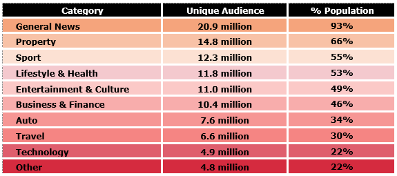 Australians are going deep and broad, engaged by multiple news publishing titles and categories.