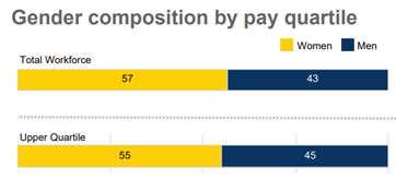 Women form a majority of 57% of Roy Morgan’s workforce of well over 1,000 employees, and importantly, women comprise a clear majority of 55% of the hundreds of employees included in our upper quartile by pay.