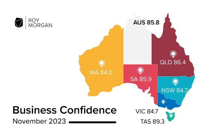 “Roy Morgan Business Confidence was down 4.6pts to 85.8 in November. The index has now spent a record ten straight months (since February 2023) in negative territory below 100. This is the lowest Business Confidence for over three years since September 2020 (85.6).